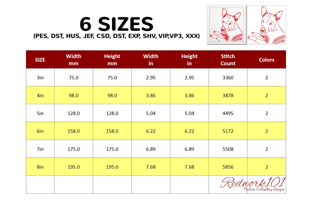 The .ZIP file will contain the following formats: .PES, .CSD, .DST, .EXP, .HUS, .JEF, .SHV, .VIP, .XXX, .VP3, .PEC