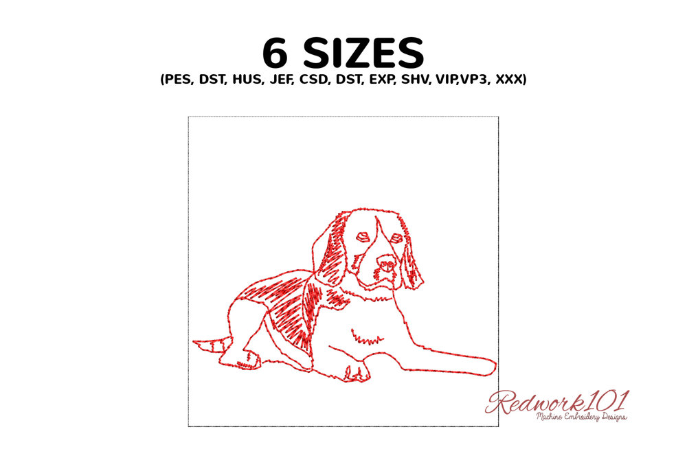 A detailed depiction of a Beagle dog in a relaxed sitting or lying pose.