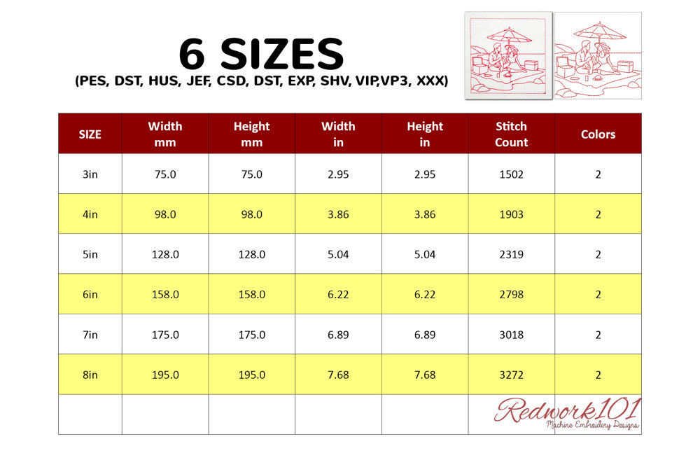 The .ZIP file will contain the following formats: .PES, .CSD, .DST, .EXP, .HUS, .JEF, .SHV, .VIP, .XXX, .VP3, .PEC