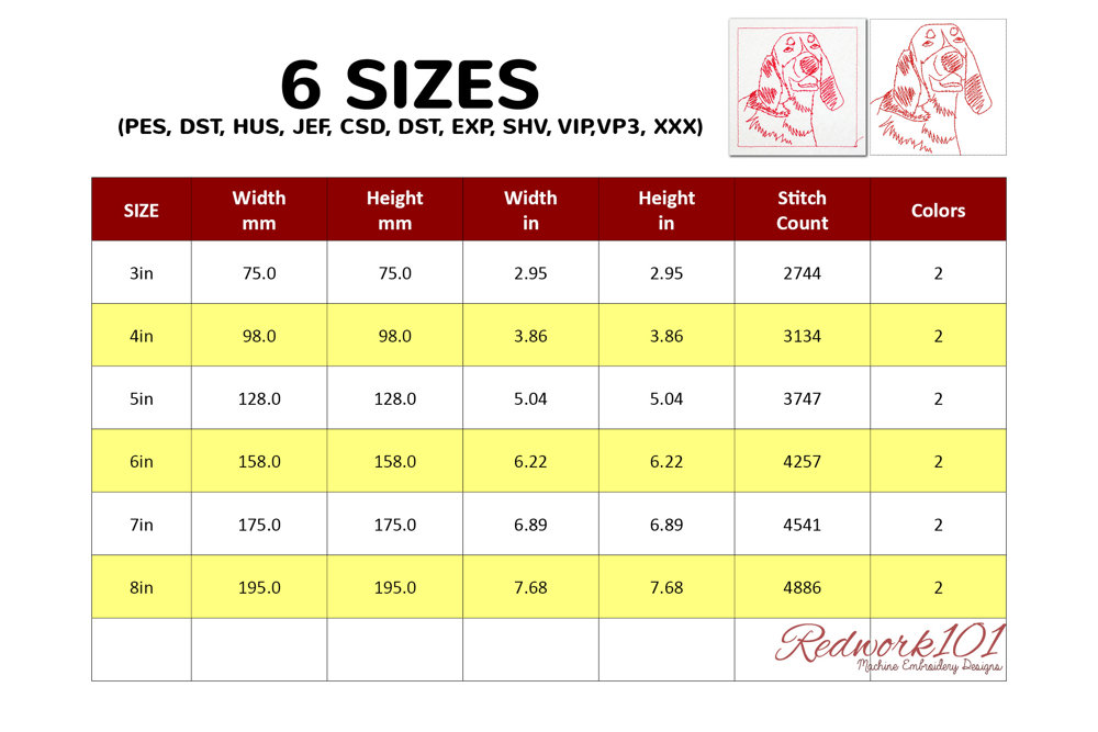 The .ZIP file will contain the following formats: .PES, .CSD, .DST, .EXP, .HUS, .JEF, .SHV, .VIP, .XXX, .VP3, .PEC