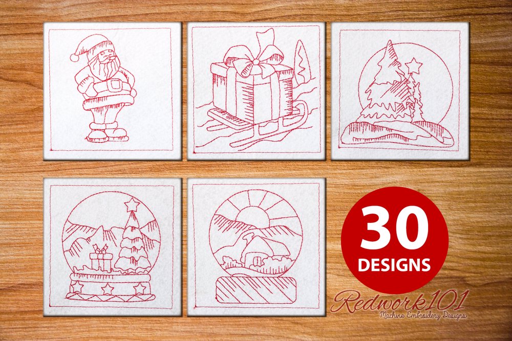 Included are 30 Redwork Embroidery Patterns of Christmas Celebrations