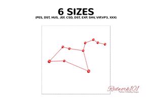 The .ZIP file will contain the following formats: .PES, .CSD, .DST, .EXP, .HUS, .JEF, .SHV, .VIP, .XXX, .VP3, .PEC